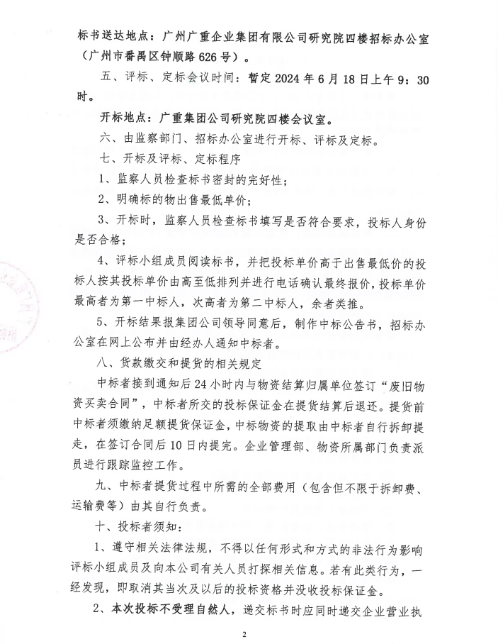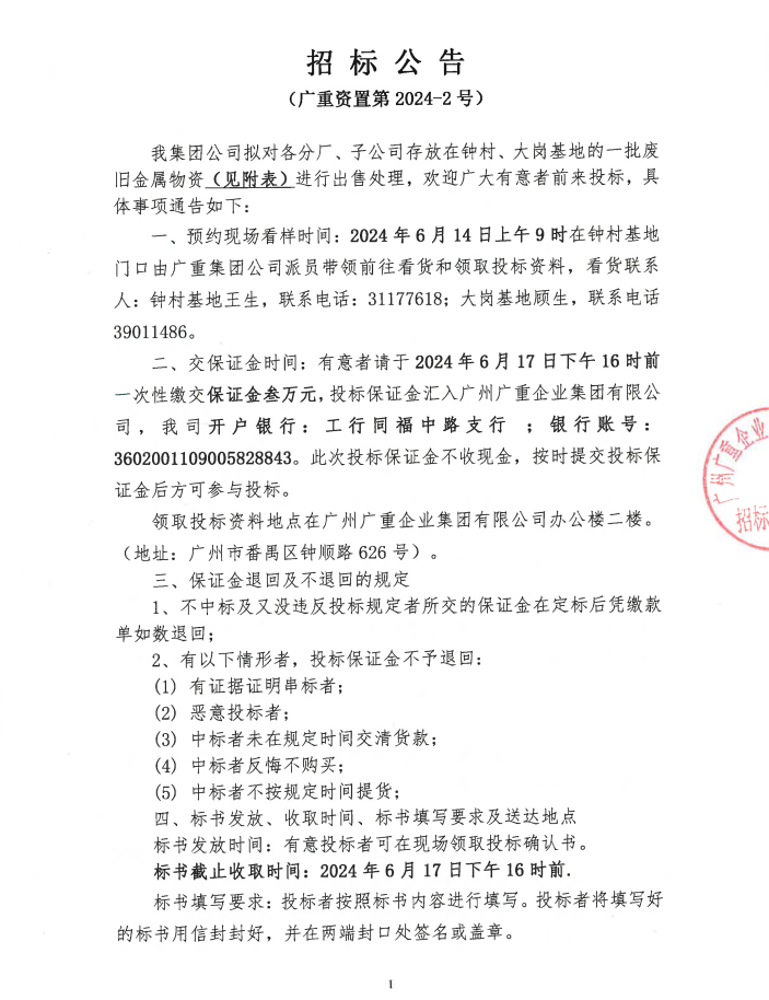 廢舊金屬物資處置(廣重資置2024-2號(hào))